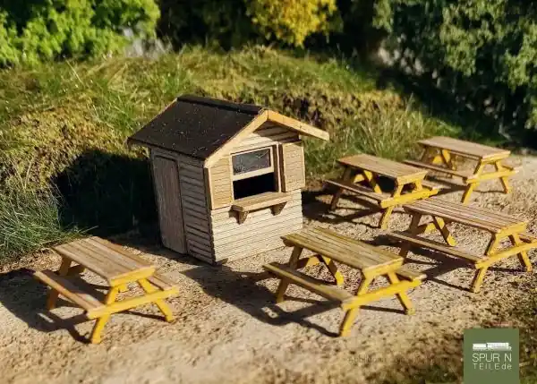 Bestpreis Model Scene – 96531 – Markststand mit Bänken (Bausatz)
