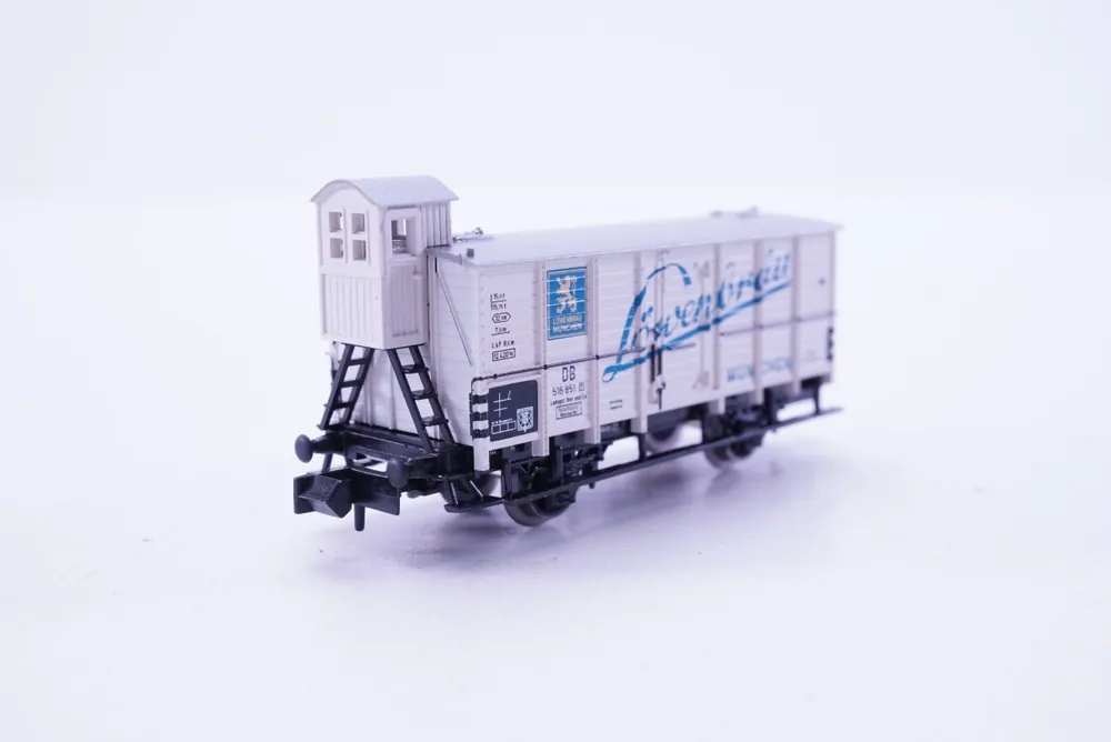 Saisonangebot (RBT335) Minitrix 15927 Güterwagen mit Bremserhaus „Löwenbräu“, DC, N, OVP – Modellbahn Rhein-Main