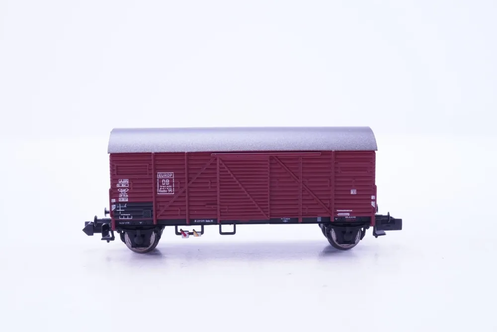 Das Spur N Modell eines ged. Güterwagen der DB, befindet sich in sehr gutem Zustand und wird in Originalverpackung geliefert.