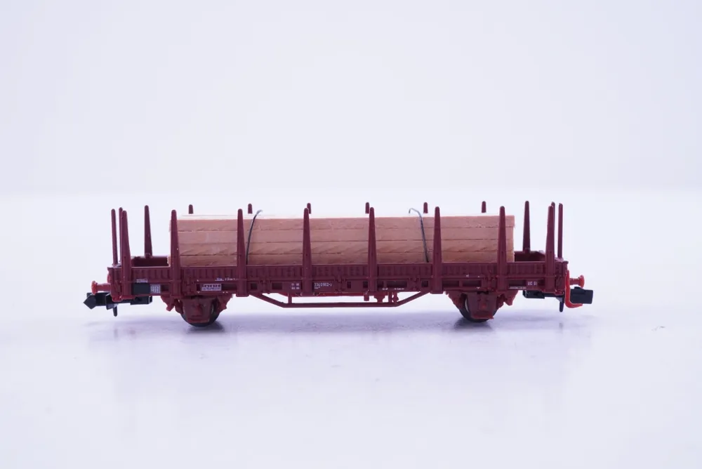 Das Spur N Modell eines Rungenwagen mit Holzladung der DB befindet sich in sehr gutem Zustand und wird in Originalverpackung geliefert.