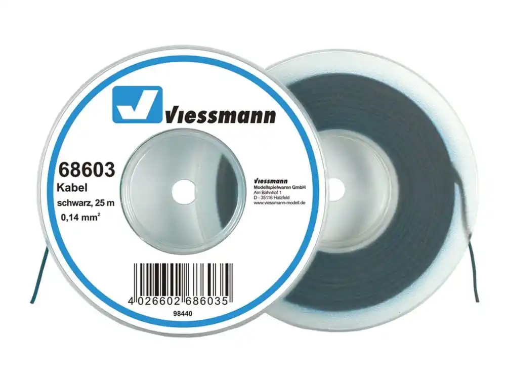 Viessmann 68603 Kabel auf Abrollspule 0,14 mm², schwarz, 25 m Markenprodukt